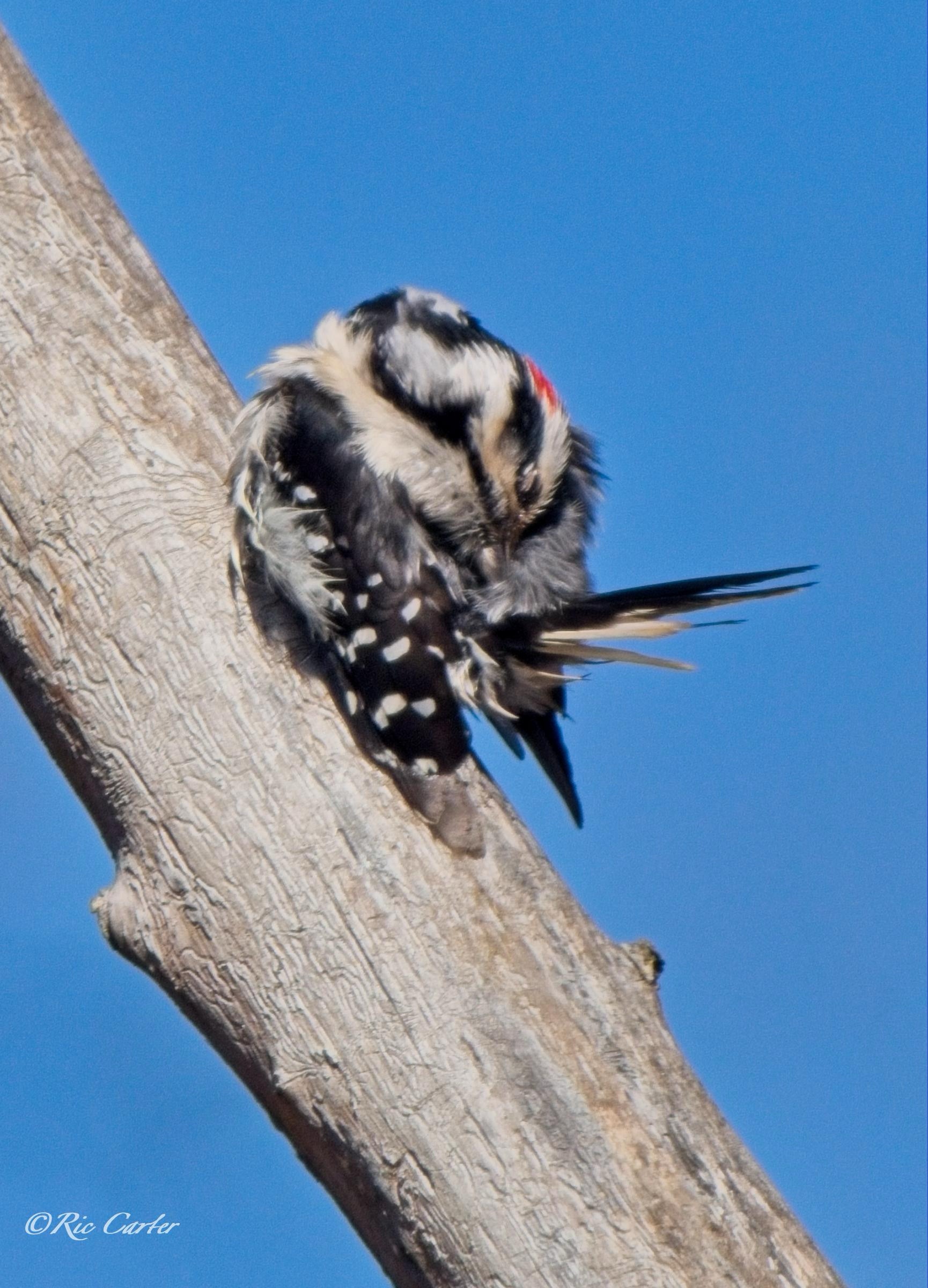 Here’s a Hairy Woodpecker preening in Bristol VA.