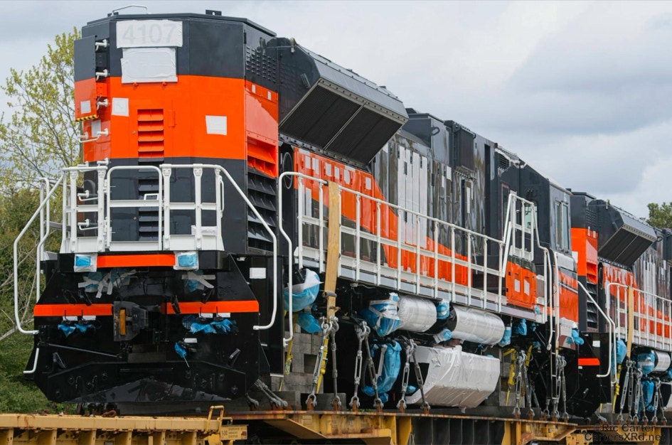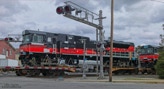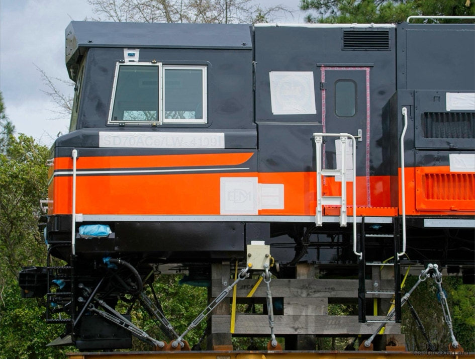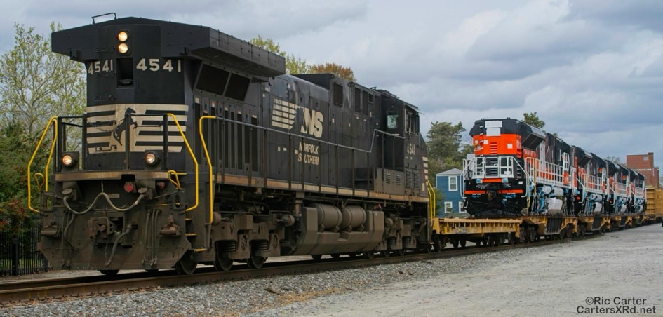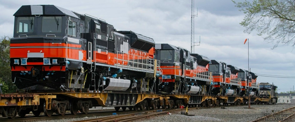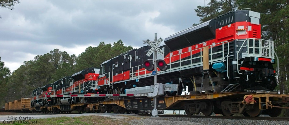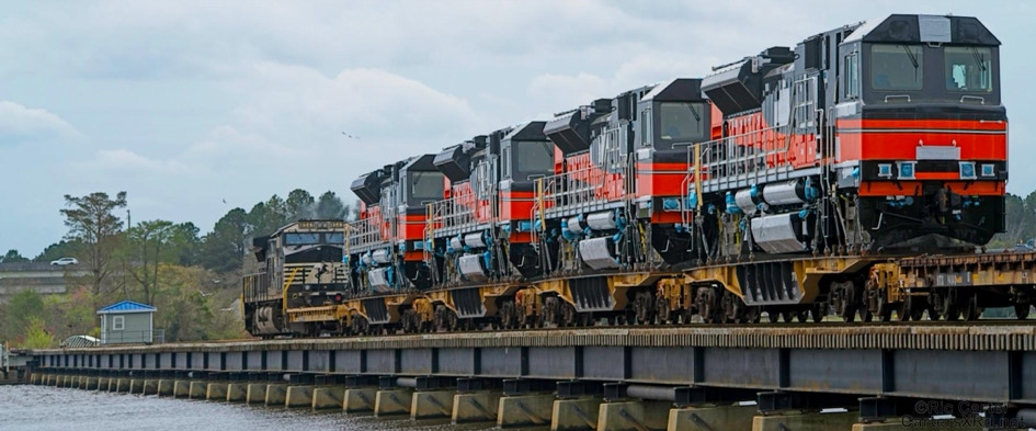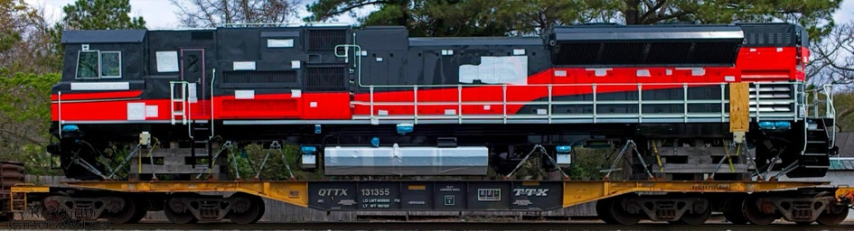 All EMD locomotive exports leave through the NC Port of Morehead City in March. These SD70ACe/LW units are headed for Mongolia. These phots were taken as they passed through New Bern NC.Four different units shipped just a couple of months ago to Chile. I find the differences in American and international cab design preferences interesting.