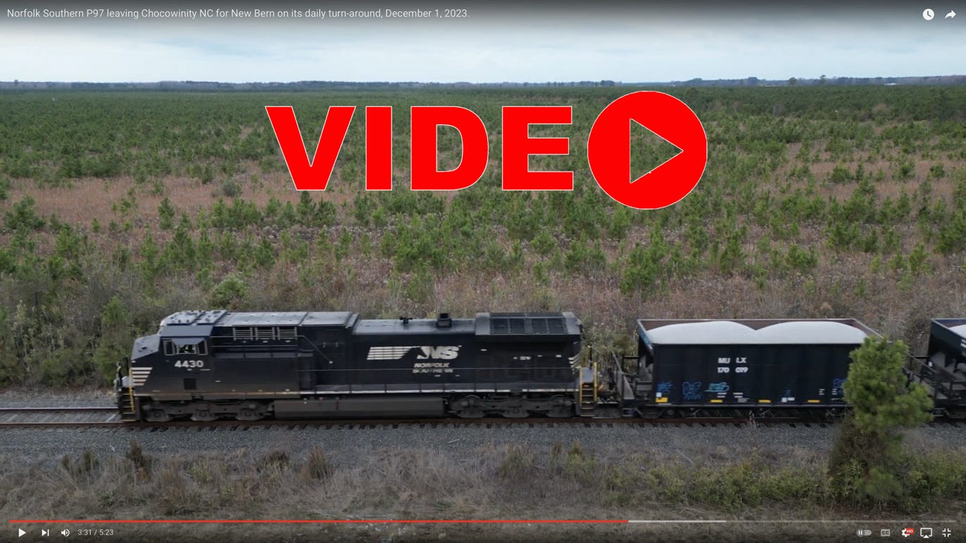 Two videos of Norfolk Southern at work in Beaufort County NC. The top one sees elements being moved around the yard to place a MoW unit on the storage track in the New Yard. The lower is of P97 heading for New Bern on its evening run.