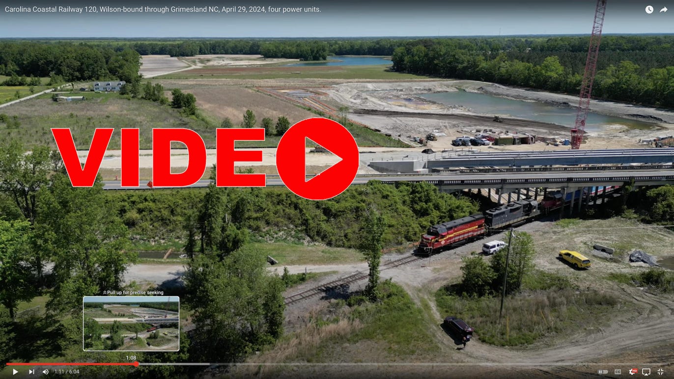 On the south side of the Pamlico River, Carolina Coastal runs two trains through Chocowinity. 120 runs Wilson/Choco week-daily, and 119 serves Pinetown through Choco.