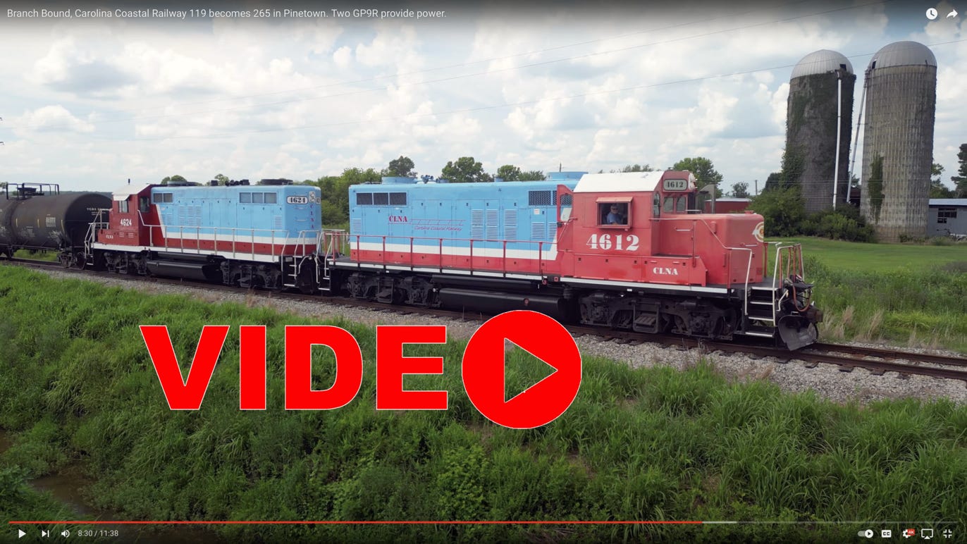 Carolina Coastal Railway crosses the Pamlico River a couple of times most weekdays. That is Train 119 between Pinetown and Chocowinity. If they tidy the train and take off down The Branch, she becomes 265. This train, powered by two GP9R, ran July 8, 2024.