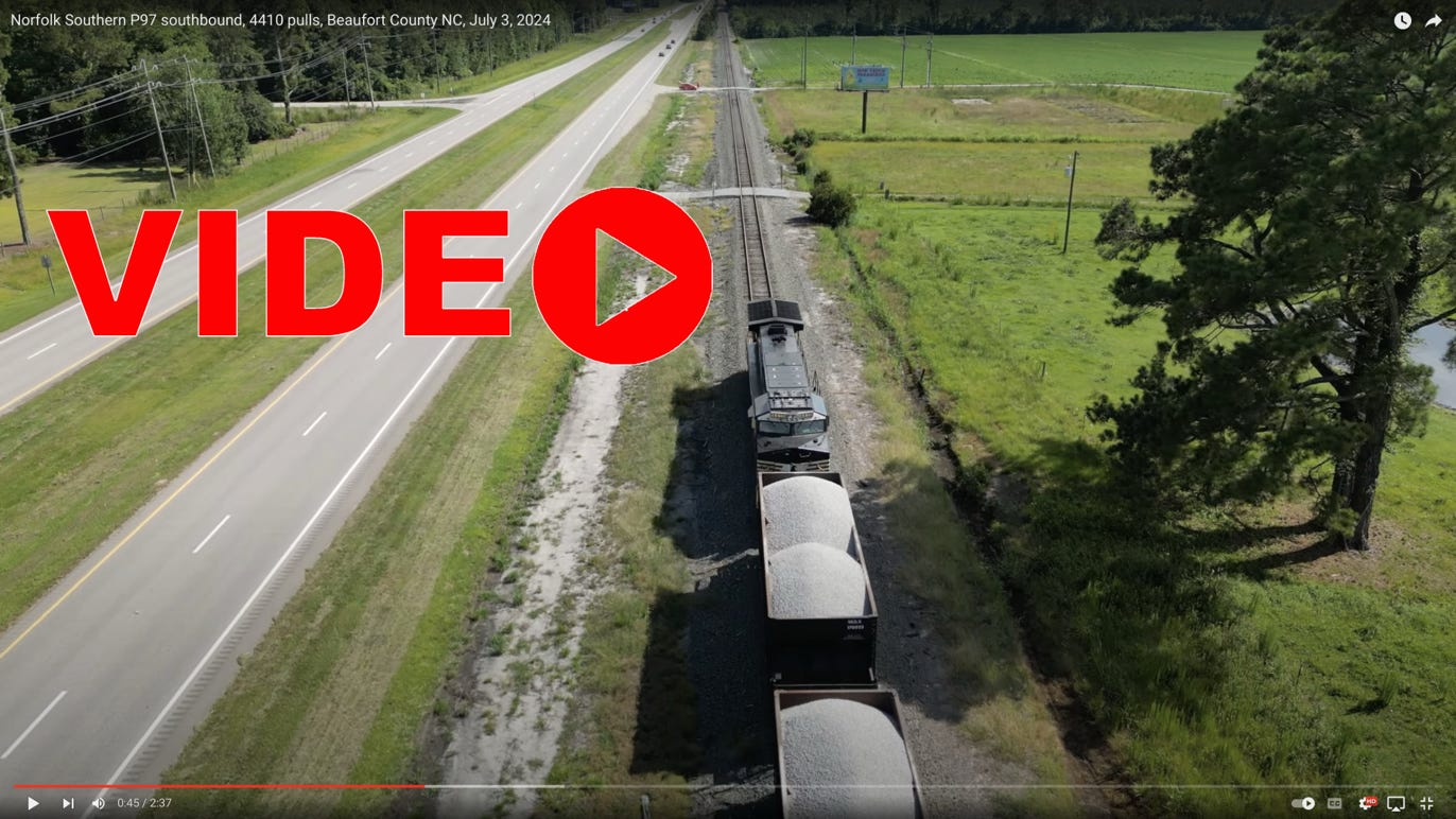 Norfolk Southern P97 southbound from Hackney Siding back in July. This is Chocowinity’s daily evening freight to New Bern and back.