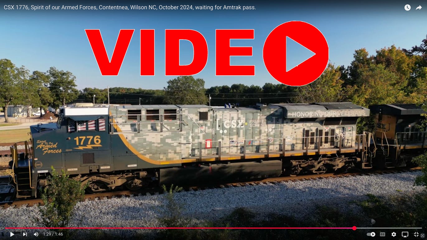 The Spirit of the Armed Forces was waiting in Contentnea awaiting track authority to proceed north. October 2024.